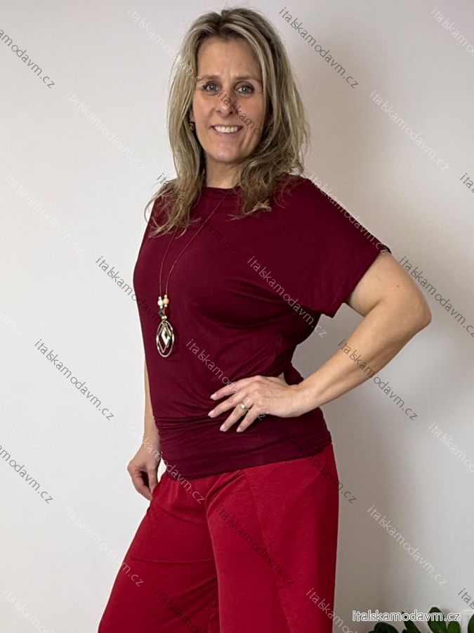 Tunika s príveskom krátky rukáv dámske nadrozmer VIVIEN (40/42/44 ONE SIZE) TALIANSKA MÓDA IM426022/DU vínová