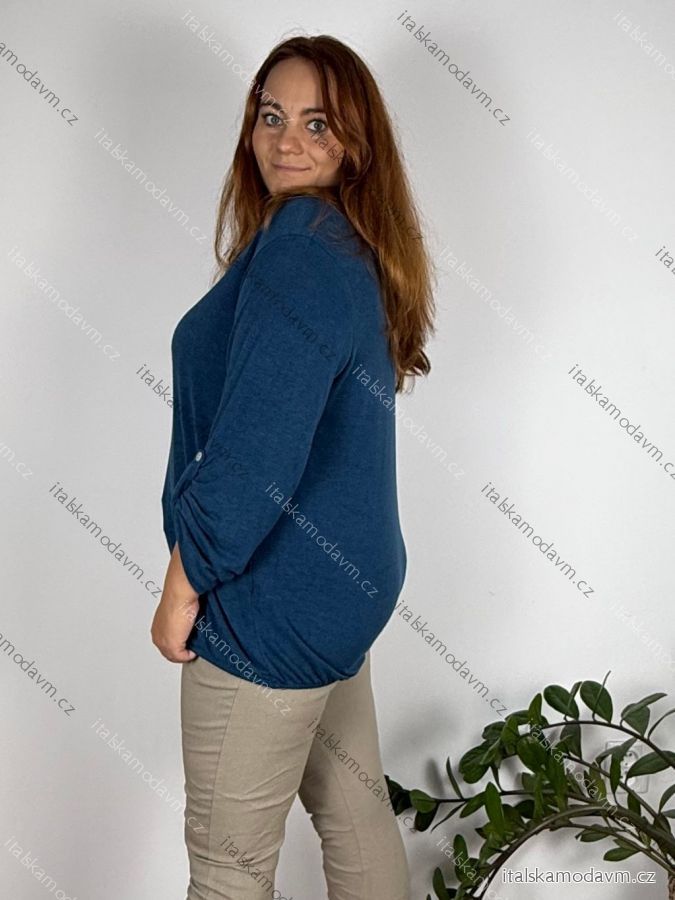 Tunika teplá 3/4 rukáv dámský nadrozměr VERONA (54/56/58 ONE SIZE) ITALSKÁ MÓDA IM425655/DU 54/56/58 modrá petrolejová