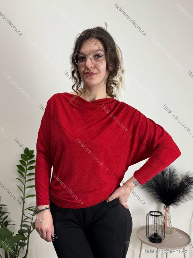 Tunika třpytivá dlouhý rukáv dámská (S/M/L ONE SIZE) ITALSKÁ MÓDA IMD251116/DU červená S/M/L