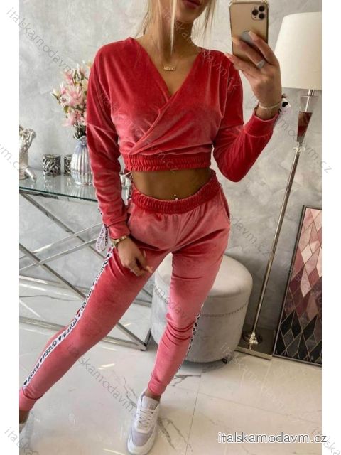 Predstavujeme vám sadu mikín a nohavíc. Sada je vyrobená z velúru. Mikina s výstrihom. Dekoratívne páska s nápisom na ramenách. V spodnej časti mikiny je všitá guma. Nohavice s vreckami a páskou na nohaviciach. Veľmi módne a štýlová sada. Sada je vyrobená z vysoko kvalitného materiálu. Veľkosť je univerzálna a bude vhodná pre dámy vo veľkostiach S, M alebo L.