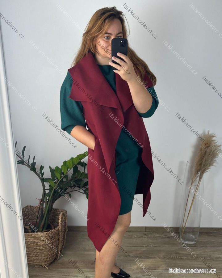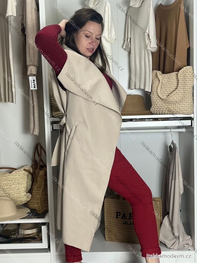 Vesta flauš dlouhá bez rukávů dámská nadrozměr (M/L/XL ONE SIZE) ITALSKÁ MÓDA IMD22900/DUR sv. béžová M/L/XL
