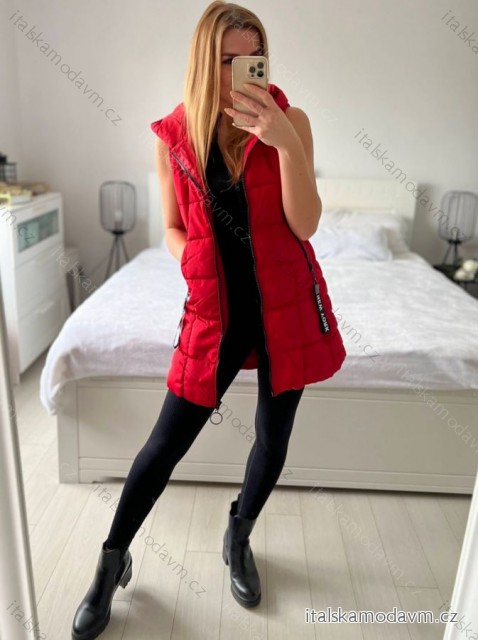 ZBOŽÍ (21991) > Vesta jarní tenká s kapucí dámská (S-2XL) ITALSKÁ MÓDA PMWB23B218135-C/DUR - červená - S