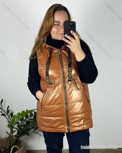 Vesta šusťáková na zip dámská (S-2XL) POLSKÁ MóDA PMWC23C208130/DU M hnědá