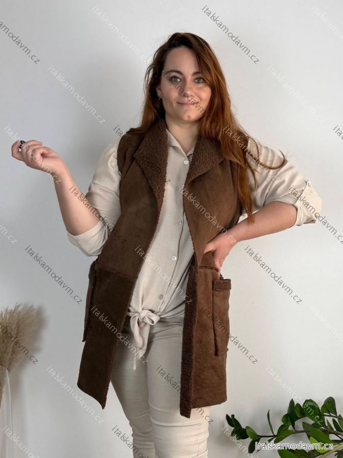 Vesta teplá bez rukávu dámská nadrozměr (44/46/48 ONE SIZE) ITALSKÁ MÓDA IMD24360/DUR
