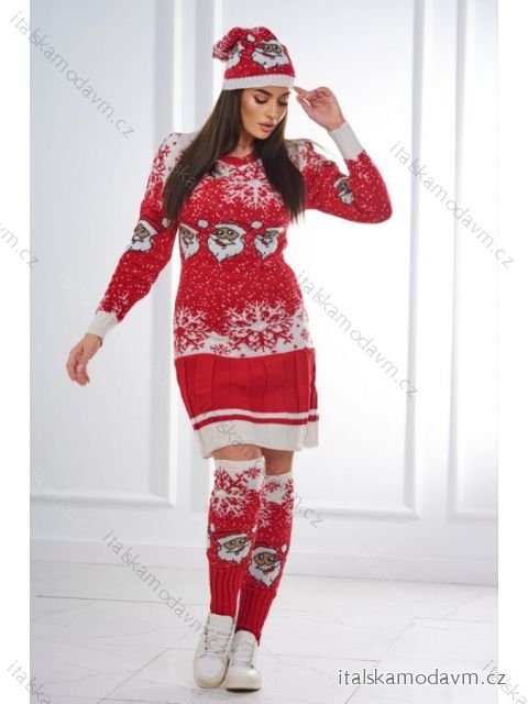 Vianočný set 1005 sveter + čiapka + červené podkolienky