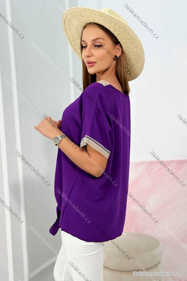 ZBOŽÍ (22801) > Oblečení dámské (18150) > Tepláky a legíny (465) > Tepláky elegantní (96) > Viskózová halenka švestkové barvy s ozdobnou krajkou