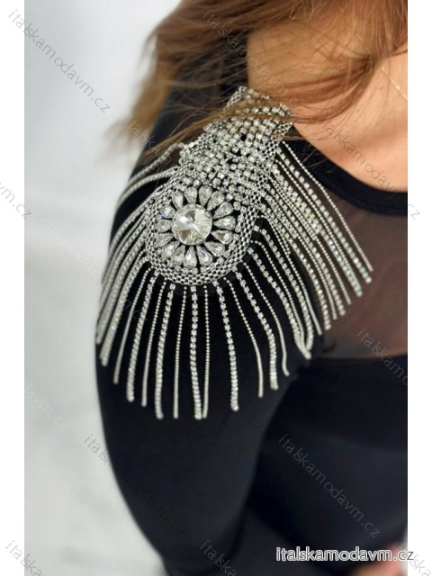 Viskózové šaty so zdobením na jednom ramene, čierne
